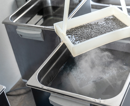 Ihre Produkte reinigen wir in unserer validierten Reinigungsanlage, die exzellente Ergebnisse liefert und nicht nur in der Medizintechnik besonderes Interesse genießt. Regelmäßig geprüft wird die Reinigungsanlage durch ein namhaftes Labor, das die Resultate ebenfalls bestätigt.